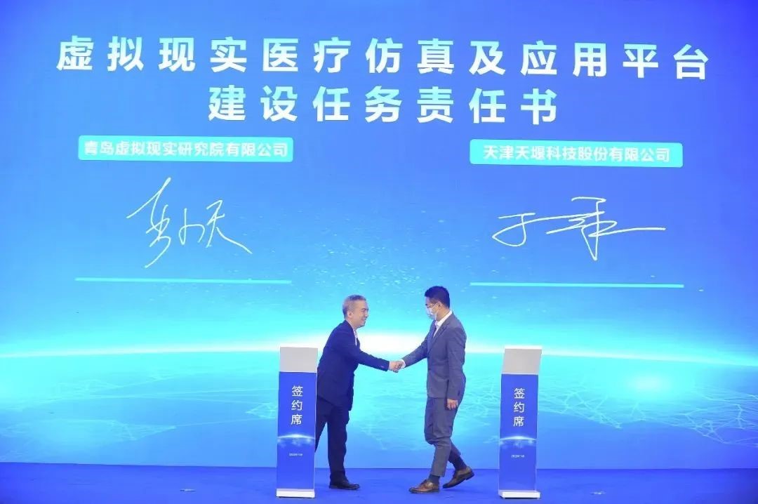 国家虚拟现实创新中心(青岛)是虚拟现实领域唯一的国家级创新中心,由南昌虚拟现实研究院牵头并联合青岛虚拟现实研究院共同组建。星空官方端平台作为青岛虚拟现实研究院的股东单位,依托公司在VR医疗方面的创新技术实力和科研人员实力,参与国家创新中心建设工作。会上,天堰科技与青岛虚拟现实研究院签订了《虚拟现实医疗仿真及应用平台》建设任务责任书,以期深度探索医学模拟教学与虚拟现实的融合发展,推动未来医学教学模式巨大变革,打造以虚拟现实为基础,实践为目的的虚拟医疗体系。同时,天堰将与中心合作单位协同创新,共同推动国家创新中心的生态化可持续发展,实现虚拟现实在中国重点产业的创新应用;引领虚拟现实产业升级改革,持续推动产业的高效和高质量进步。