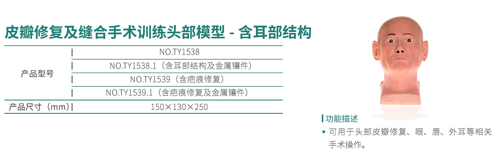 皮瓣修复及缝合手术训练头部模型 - 含耳根结构